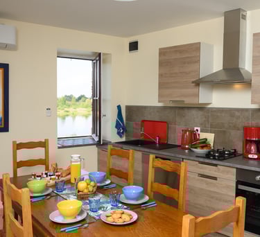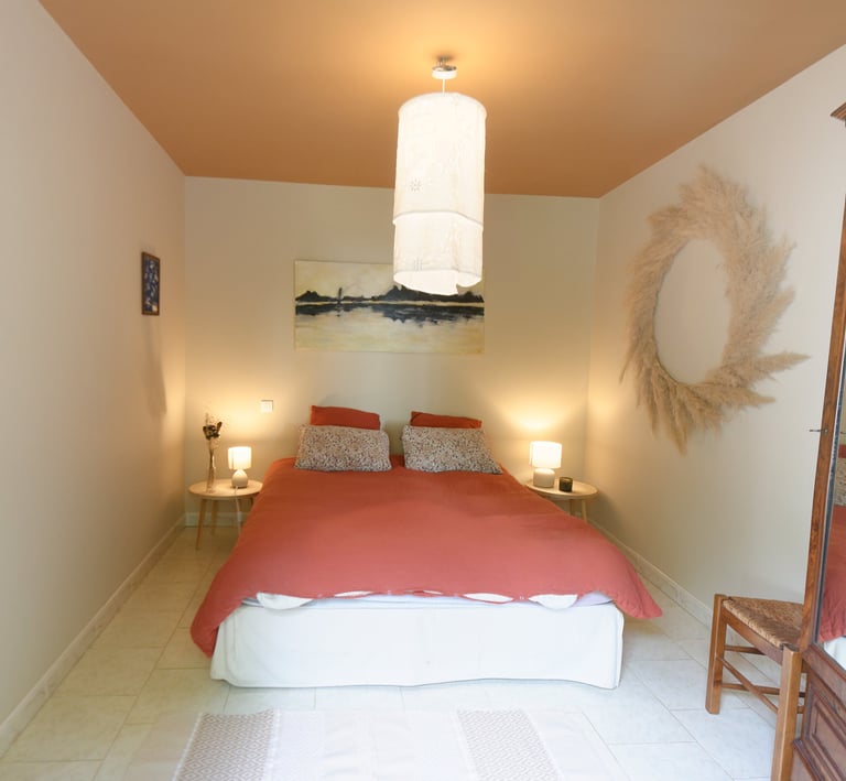 This traditional farm is located 900 m from the La Boisselée estate. The advantages of this accommodation: the location on the banks of the Loire, in the immediate vicinity of the river on a road where few cars circulate and the large private courtyard... perfect for barbecue, pétanque and other moments of relaxation... You will find a bedroom with a double bed and a single bed, a living room with a comfortable sofa bed and a large fully equipped kitchen.