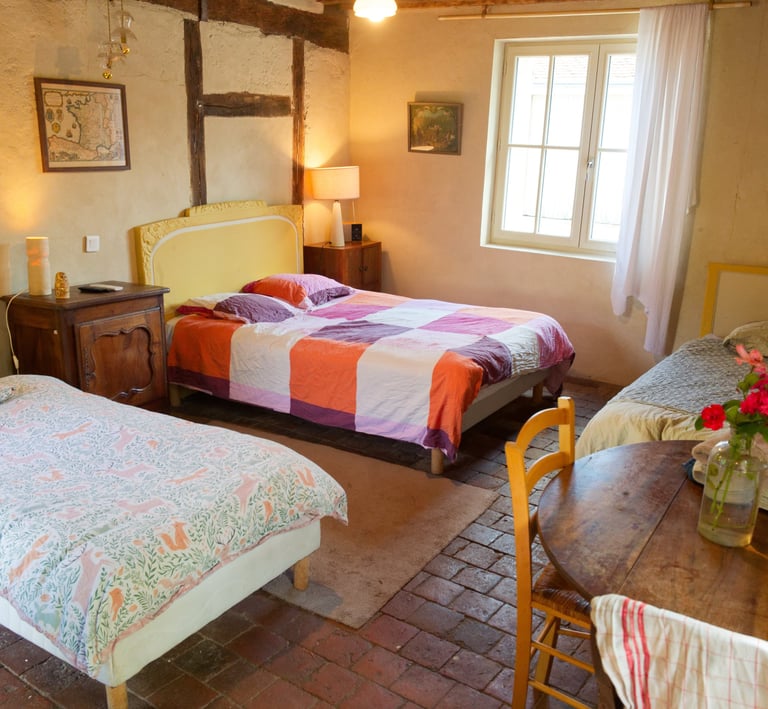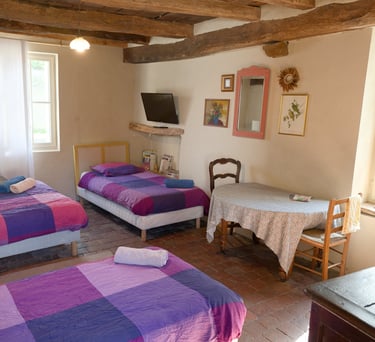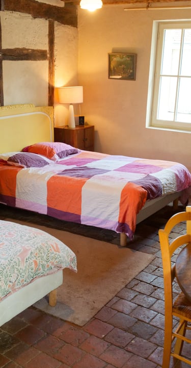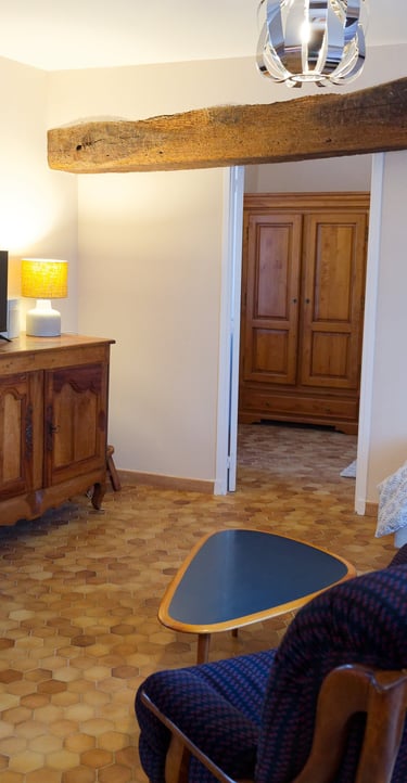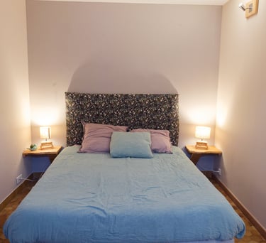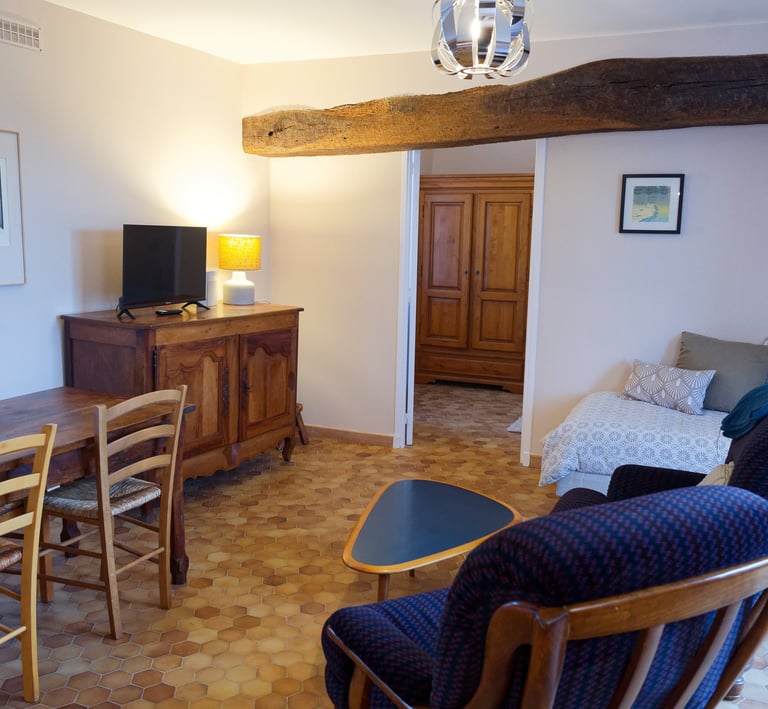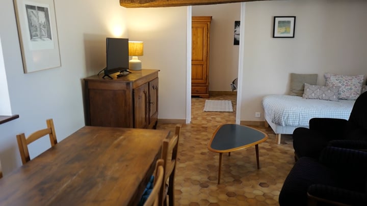 In the cottage (48 m²) you will enjoy a fully equipped kitchen, a bathroom with a bathtub and a living room with a single bed and a bedroom with a 160 cm double bed. Its sober decoration mixes the new and the old with works by artists from the village. You will be able to appreciate its charm that has crossed the ages since my great-grandparents.